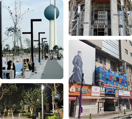 Smart lamp poles redefine urban aesthetics with customizable colors as a CITY ELEMENT. Whether in white, red, green, grey, blue, or black, each hue adds character. Adaptable to occasions and seasons, intensifying the emotional experience of urban spaces, the color becomes a statement, reflecting the city's identity
